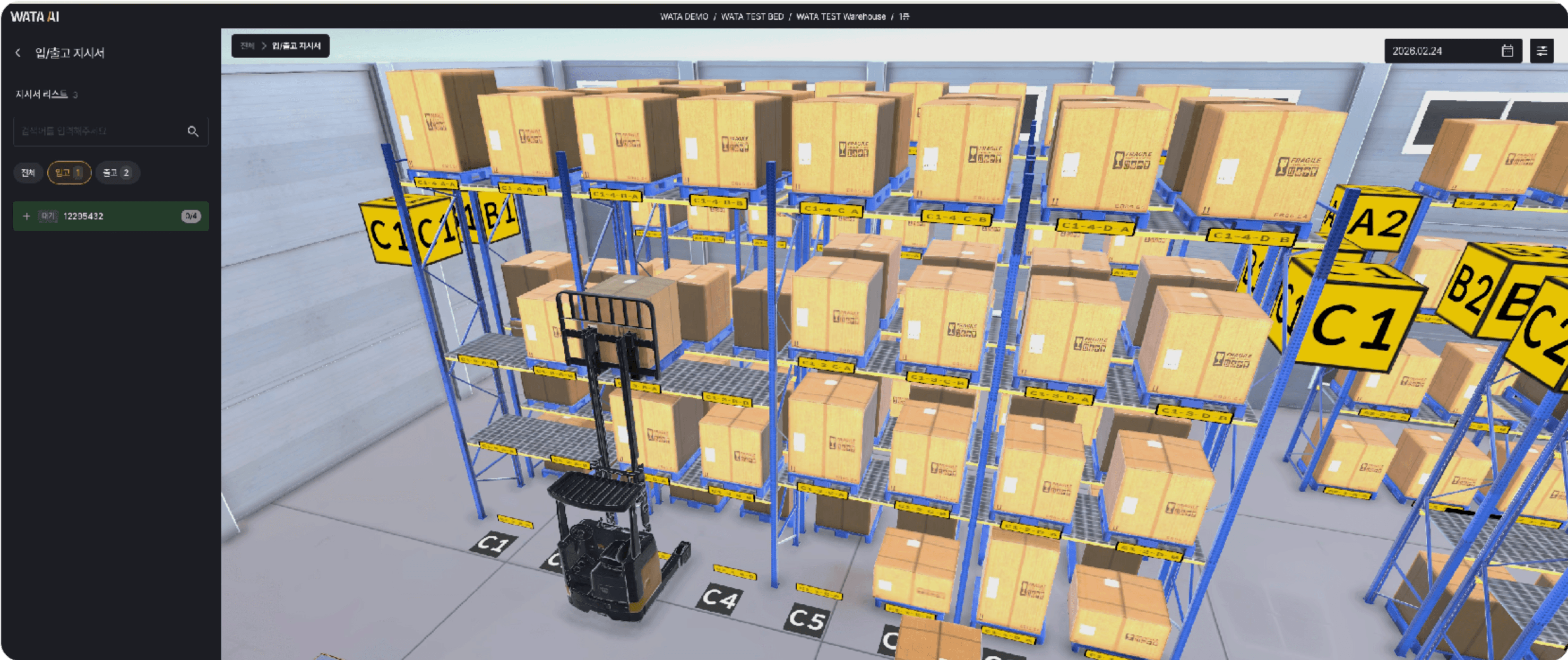 수집된 물류 데이터와 지게차의 실시간 정보를 통합 맵핑하여 최적의 적재 위치를 결정하고, 개별 장비에 효율적인 작업 지시와 최단 경로를 지원함으로써 창고 운영의 전 과정을 최적화하고 생산성을 극대화합니다.