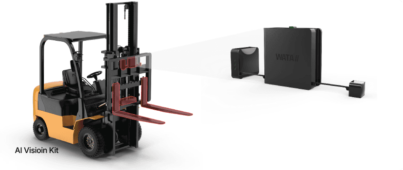 WATA AI의 지게차 모션인식 및 디지털 트윈 기술은 Vision Kit를 통해 수집된 실시간 데이터를 바탕으로 물류 현장을 트윈환경에 정밀하게 구현합니다. AI 기반의 PCD(Point Cloud Data) 분석을 통해 지게차의 이동 경로, 포크의 높낮이, 조향 상태 등 세밀한 모션 데이터를 자동으로 수집하고 맵핑합니다.